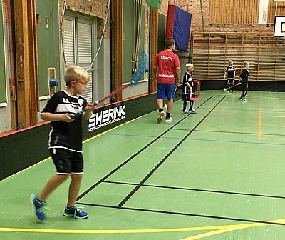 Direkt efter uppvärmningen så körde vi lite passningsövningar. Här var det fokus på att titta var kompisen hade sin klubba och sidoförflyttningar samt att hålla bollen på golvet. Det funkade fint.