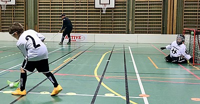 Vi gick sedan över till en dribblingsövning ala halv McDonalds samt straff slag. Vi började i ena hörnet med att dribbla mellan konor som stod tätt upp till mitten. De vänder sedan tillbaka mot mål. Där slår killarna en passning till Henrik som passar tillbaka och killarna tar sedan avslut på mål. Därefter rundar de Henrik för att sedan springa upp till mitten och lägga en straff not målet på andra sidan. När den är lagd springer man tillbaka längs sargen och stället sig sist i ledet i hörnet där de började. Syftet med denna övningen är att öva upp klubbtekniken, passningar, skott samt öva på straffar. För målvakterna så blev det att rädda skott på mål samt att öva på att stå i mål vid straff.
