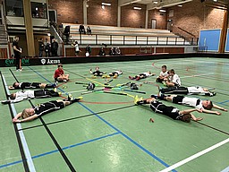 Efter träningen idag så körde vi en avslappningsövning. Killarna fick lägga sig i en cirkel i mitten sträcka ut sig och blunda. De fick andas djupa andetag och slappna av. Ibland så kan killarna behöva landa lite efter träningen och idag så verkade det passa.