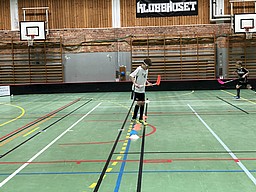 Vi körde sedan vidare på övningen som vi började med i onsdags. Nu börjar den sitta. Det som vi la till idag var att när de backar med bollen så ska de backa med forehand varannan gång och med backhand varannan för att öva upp båda teknikerna.