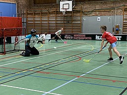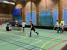 Vi drog igång Fredagsträningen med Jojjes specialbana. Jojje vaktade kassen så att killarna fick ha en målvakt. Vi fick stanna upp efter en stund då det slarvades med passningarna. Det var flera av spelarna som fnätte bollen i passningsögonblicket vilket gjorde att bollarna studsade och var svåra för medspelarna att ta emot. Vi snackade igenom det. Vi ska dra passningarna med klubban i en rörelse. Vips och sedan blev det bättre.