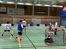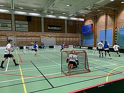 Vi körde sedan vidare på uppspelsövningen 5 i anfall som vi har kört ett tag. Nytt för idag var att det var målvakten som började med att rulla ut bollen till en av backarna. Med detta så var hela laget delaktiga i uppspelet. Det funkade bra och killarna har kommit in i den ordentligt.