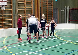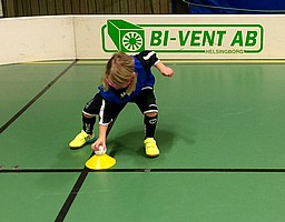 Efter uppvärmningen så gjorde vi en övning där vi delade tjejerna i två grupper, grupperna fick västar i olika färger som de använde som "svansar". Övningen går ut på att man ska ta det andra laget svansar så fort som möjligt och det lag som först tagit alla svansar från motståndarlaget vinner. Det tjejerna lär sig på denna övningen är att våga gå emot sina motståndare samtidigt som vi tränar på fotarbete då man måste röra på sig hela tiden för att skydda sin egen svans/väst.