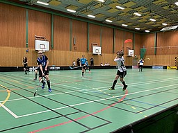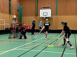 Vi avslutade med matchspel. Vi gick igenom hur man ställer upp vid frislag nära mål, med mur och hur man ställer upp i muren. Under sista delen av matchspelet tillkom en regel som innebar att alla var tvungna att ha två händer på klubban hela tiden. Den spelare som släppte greppet, fick gå utanför sargen och köra 10 st armhävningar. Det märkes direkt att spelarna hade en annan stabilitet i spelet.