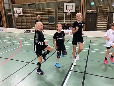 Dagens träning började med att Erica, Ella och Mia-Maria höll i Pidde P-uppvärmning. Roligt! Vi fortsatt med att Rickard och Andreas utmanade tjejerna i vargleken. Tyvärr förlorade killarna och fick som straff göra 50 situps. Sedan övade vi passningar med Rosetten och därefter en övning med dribblingar och skott. Klara och Mika var målvakter idag, och fick en hel del att göra när vi avslutade med köttbullen.