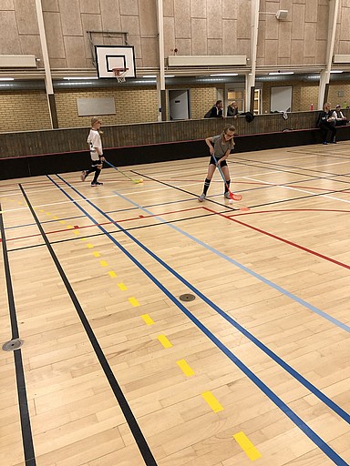 Efter det olika passningsövningar där tjejerna skulle försöka titta upp och passa under rörelse. Tjejerna fick sedan öva på dribbla/skott med lyftning. Vi hann också med stafett innan det blev spel. Avslutningsvis blev det samma intervallövning där vi sprang två och två, och tjejerna var så duktiga och tog ut sig!