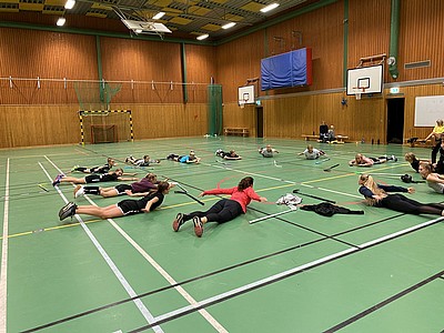 Idag så fick vi besök av Lotta och Wilma som körde löpträning med tjejerna. Det hela började med en rolig uppvärmning där tjejerna fick kasta bollar på varandra. Sedan så blev det en runda Tabata med fokus på magmuskler. Lotta förklarade att för att kunna löpa ordentligt krävs att man har bra magmuskler.